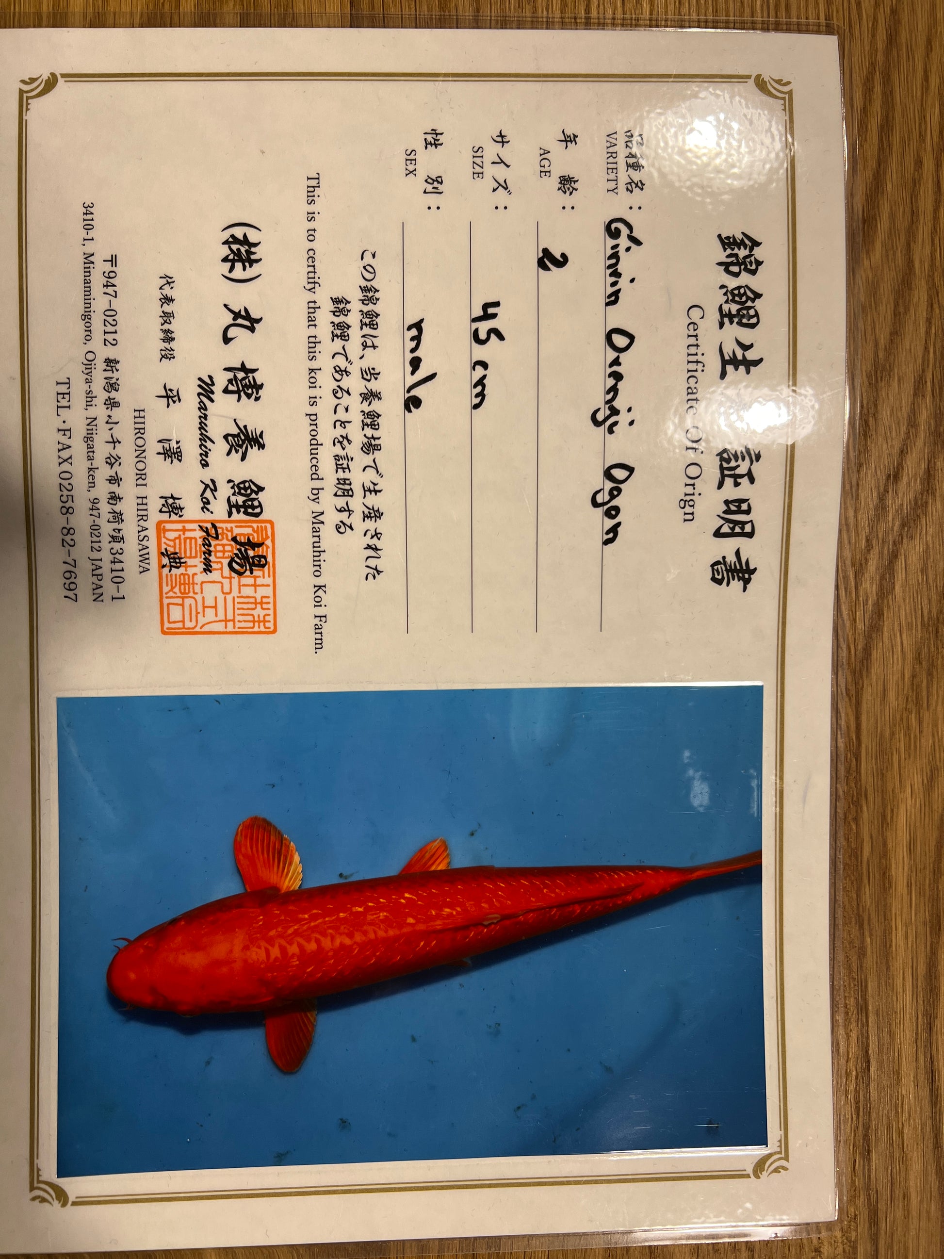 Ginrin Orenji Ogon HQ samiec 53CM CERTYFIKAT